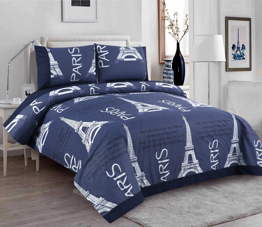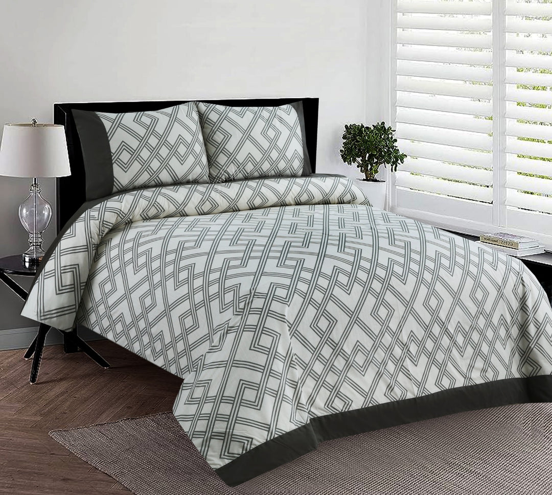3 Pcs Cuffed Printed Bedsheet Set - 1260