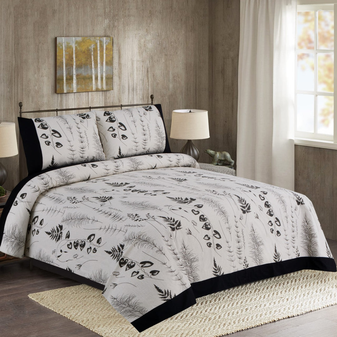 3 Pcs Cuffed Printed Bedsheet Set - 1361