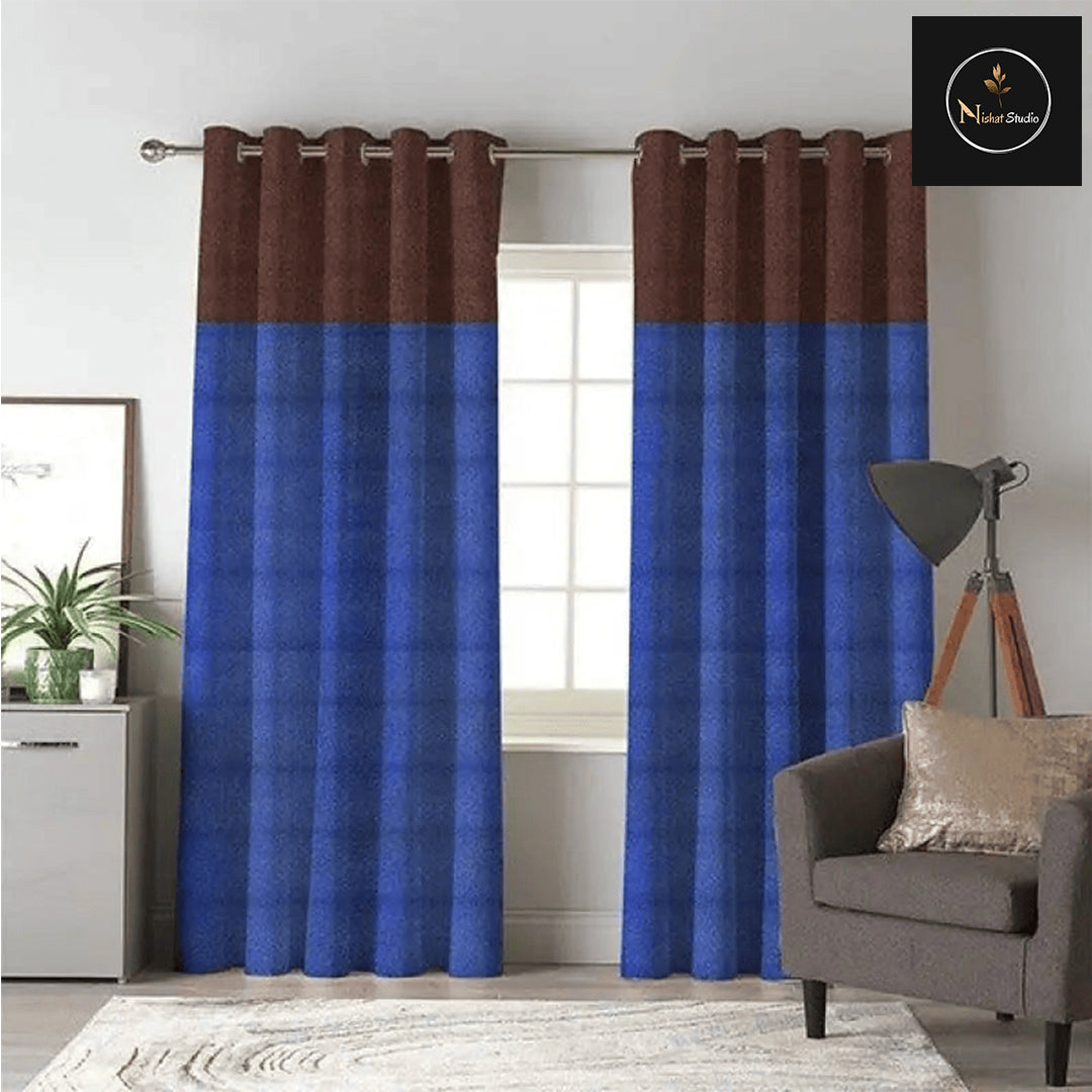 2 Shaded Jacquard PQ Curtains - Pair (Blue & Dark Brown)