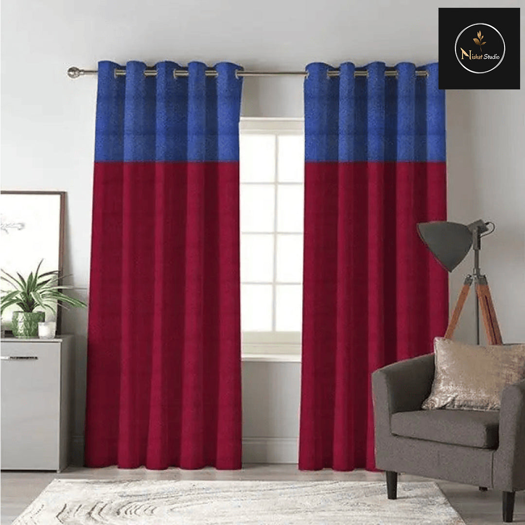 2 Shaded Jacquard PQ Curtains - Pair (Maroon & Blue)