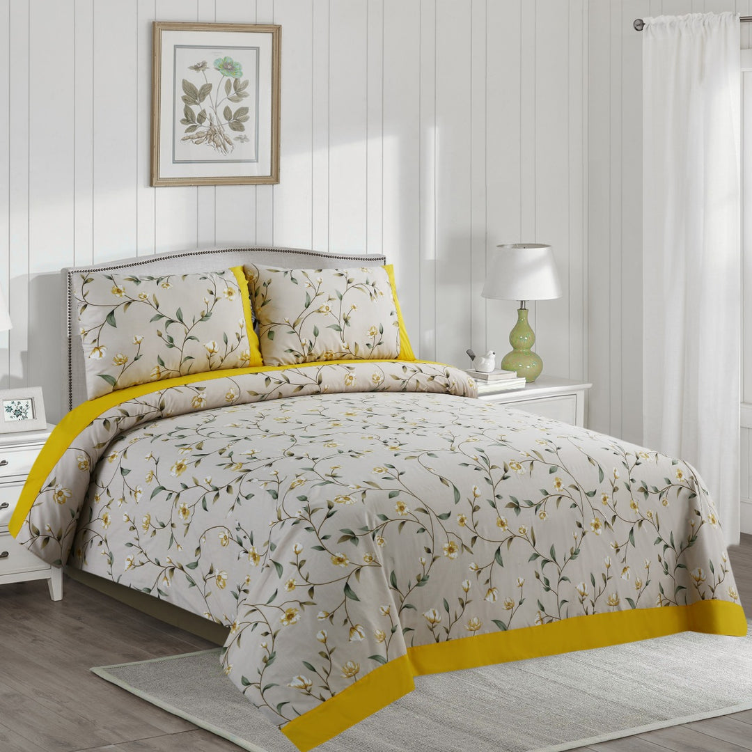 3 Pcs Cuffed Printed Bedsheet Set - 1395