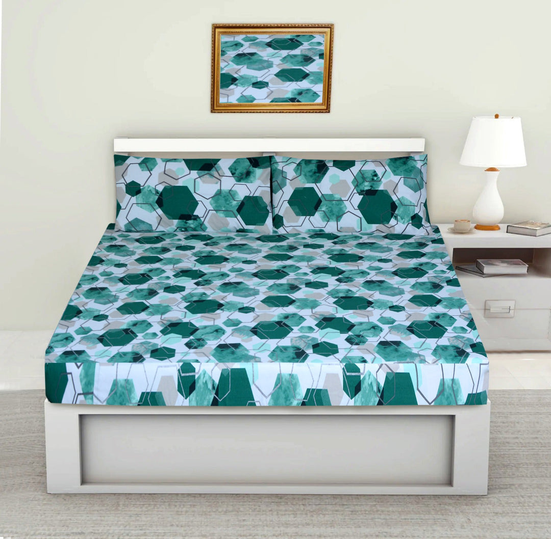 3PCS Printed Fitted Sheet with pillow Covers - 1125