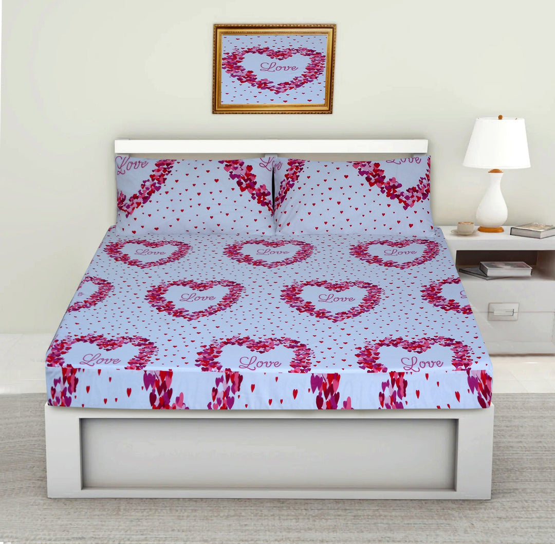 3PCS Printed Fitted Sheet with pillow Covers - 1086