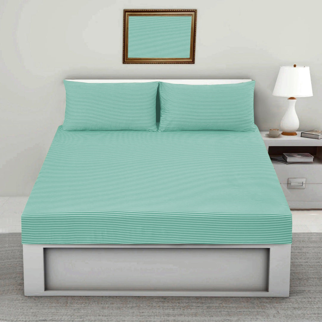 3 PCs Satin Strips Fitted Sheet with Pillow cover