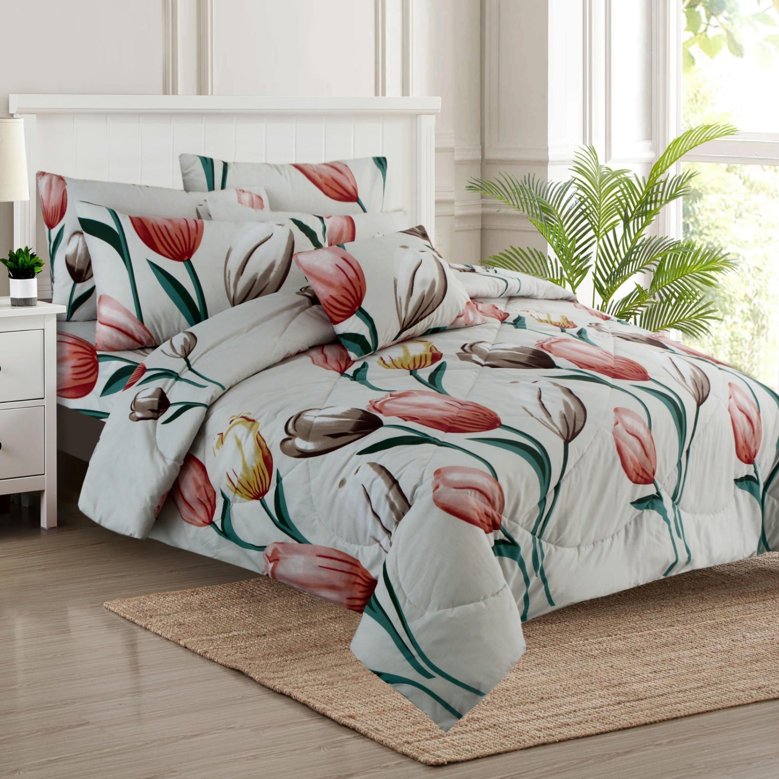 Include: 7 Pieces: 1 Quilt Filled, 1 Bedsheet, 4 Printed Pillow covers, 1 Cushion